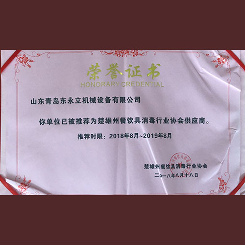你单位已被推荐为楚雄州餐饮具消毒行业协会供应商